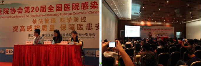 ◆ 本公司作為大會主贊助企業(yè)參加第十二屆東亞國際醫(yī)院感染控制大會,會上,作為中國醫(yī)院協(xié)會醫(yī)院感染管理專業(yè)委員會委員,公司董事長戴彥榛作了《應(yīng)對醫(yī)療消毒風(fēng)險》的學(xué)術(shù)報告,并與中華預(yù)防醫(yī)學(xué)會消毒分會主任委員張流波、中國醫(yī)院協(xié)會醫(yī)院感染管理專業(yè)委員會常務(wù)副主任委員劉運喜、衛(wèi)生部消毒專家胡國慶三位專家共同與大會代表展開如何應(yīng)對醫(yī)療消毒風(fēng)險的現(xiàn)場互動式學(xué)術(shù)交流。
